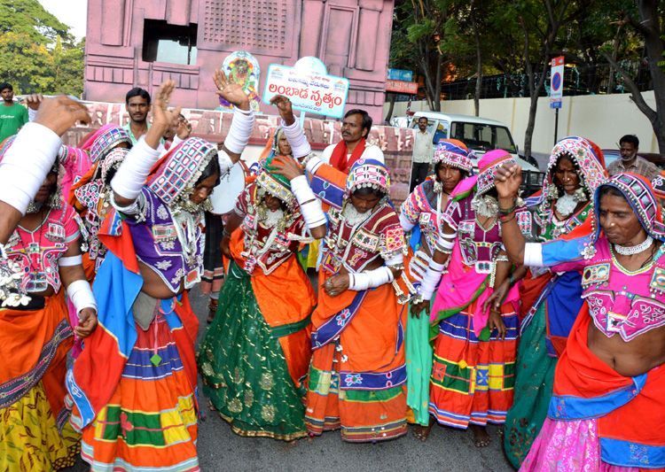 Cultural troupes like folk dancers, Pothu Raju, Lambada dance, traditional music play stands highlights of Bathukamma festival held at Tank Bund on Thursday in Hyderabad.