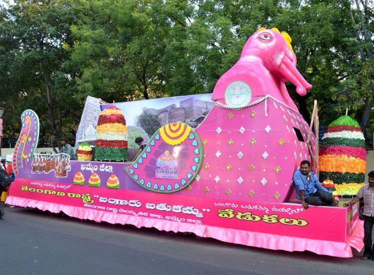 Tableaus depicting Telangana heritage, culture and history formed part of Bathukamma procession.