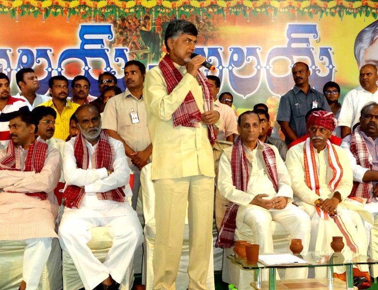 Chief Ministers of Andhra Pradesh and Telangana N Chandrababu Naidu, K Chandrasekhar Rao meets and greets each other at Alai Balai (Dasara Milan) hosted by BJP MP Bandaru Dattatreya at Jal Vihar in Hyderabad on Sunday. Governor ESL Narasimhan, Union minister M Venkaiah Naidu along with leaders of all parties attended the programme.