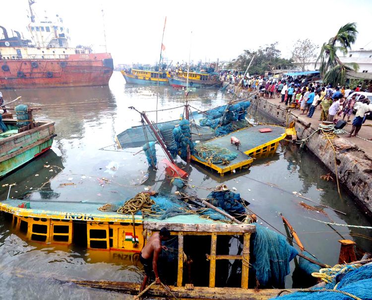The Trial of Disaster: Visakhapatnam resembled a war zone, a day after the very severe cyclonic storm, Hudhud, blasted the city. With uprooted trees and electric poles lying everywhere in the streets and power cables dangling dangerously on the roads, shops and even buildings, the city, as many citizens bemoaned, was literally torn apart. – More Photos Inside.