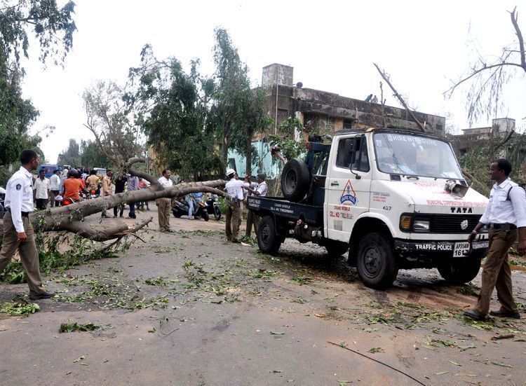 The Trial of Disaster: Visakhapatnam resembled a war zone, a day after the very severe cyclonic storm, Hudhud, blasted the city. With uprooted trees and electric poles lying everywhere in the streets and power cables dangling dangerously on the roads, shops and even buildings, the city, as many citizens bemoaned, was literally torn apart. – More Photos Inside.