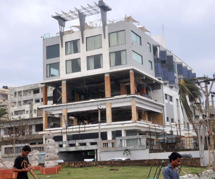The Trial of Disaster: Visakhapatnam resembled a war zone, a day after the very severe cyclonic storm, Hudhud, blasted the city. With uprooted trees and electric poles lying everywhere in the streets and power cables dangling dangerously on the roads, shops and even buildings, the city, as many citizens bemoaned, was literally torn apart. – More Photos Inside.
