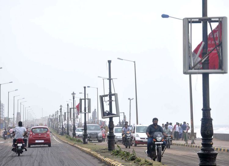 The Trial of Disaster: Visakhapatnam resembled a war zone, a day after the very severe cyclonic storm, Hudhud, blasted the city. With uprooted trees and electric poles lying everywhere in the streets and power cables dangling dangerously on the roads, shops and even buildings, the city, as many citizens bemoaned, was literally torn apart. – More Photos Inside.