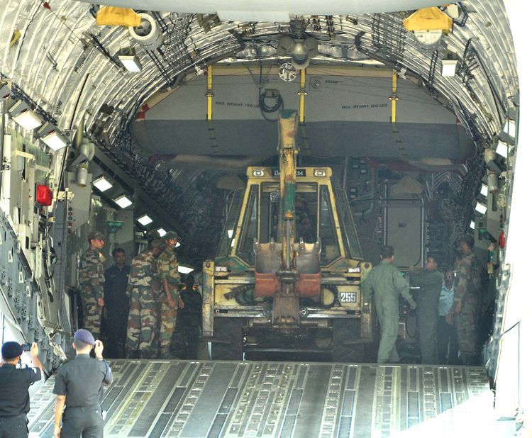 Begumpet Airport was full of activity with a number of planes making sorties for various reasons, but the most attractive was Indian Air Force C 17 transport plane that was loaded with earth movers tonnes of relief material like essential goods to be sent to Visakhapatnam. The relief material was distributed among the Cyclone Hudhud victims in the north Andhra Pradesh districts.