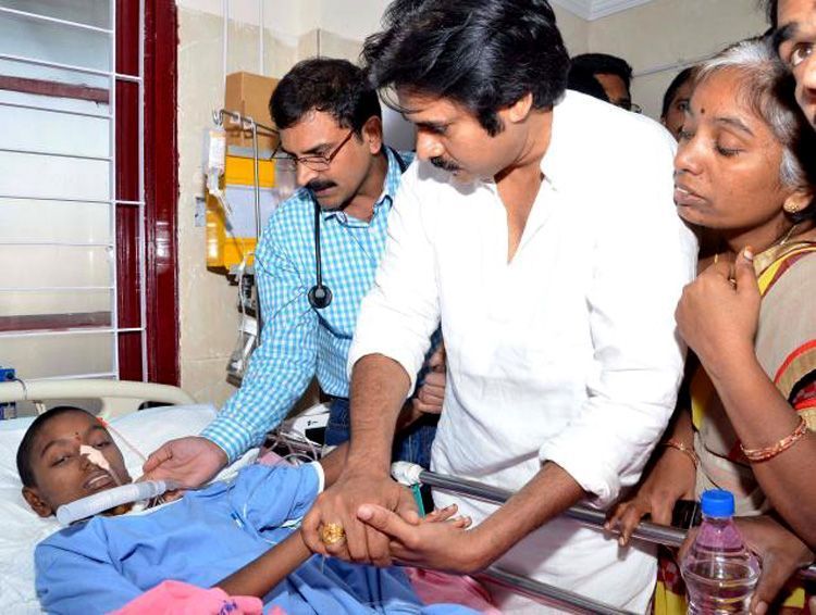 Actor, Jenasena founder Pawan Kalyan calls on Sreeja, a terminally ill girl, at a hospital in Khammam on Friday.