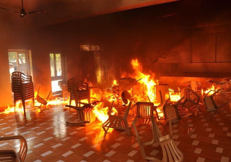 TRS activists vandalised and set on fire TDP office in Nalgonda on Tuesday. The attack was made protesting against Chandrababu Naidu's decision decision to suspend power generation at Srirailam. Police personnel of the two states have also been deployed at Srisailam Project as a precautionary measure.