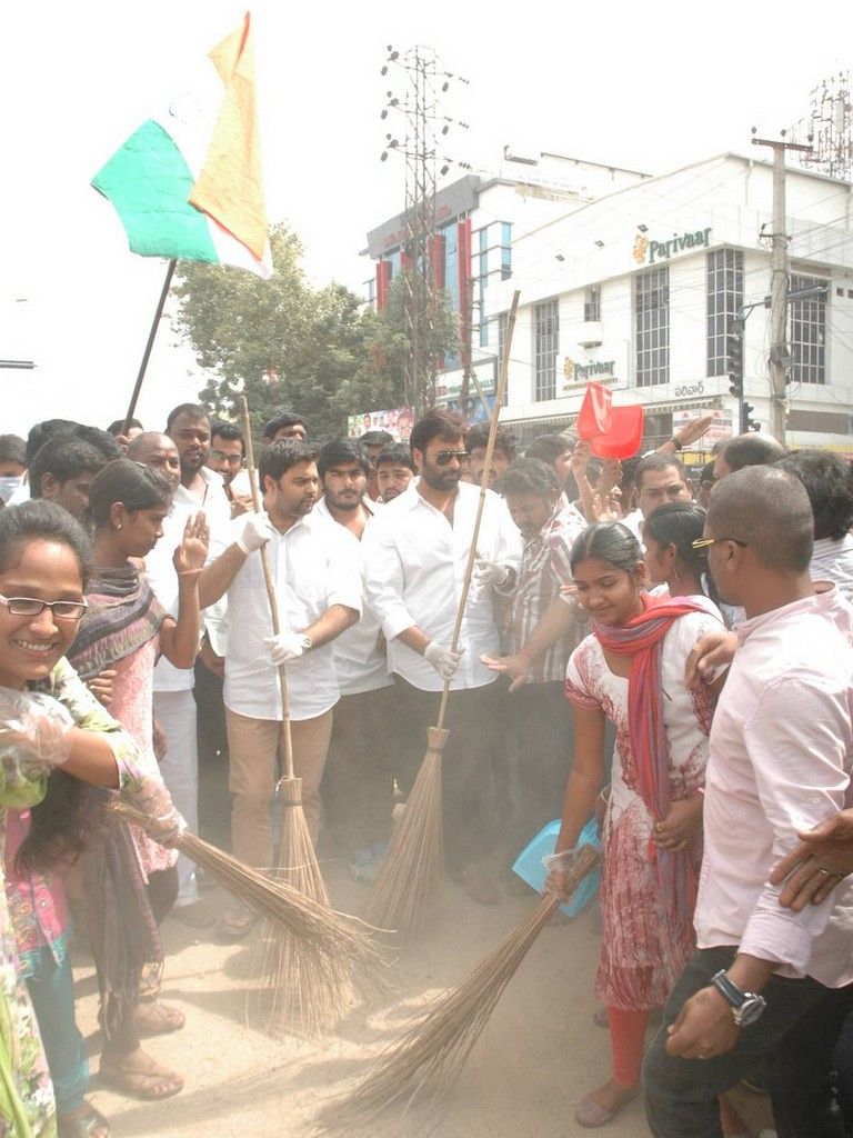 Nara Rohit showed his social responsibility by participating in the Swachh Bharat campaign organized at Radhika theatre in ECIL, Hyderabad. He cleaned the roads around the premises of theatre. Rohit requested everyone to participate in the Swachh Bharat campaign and clean their surroundings.