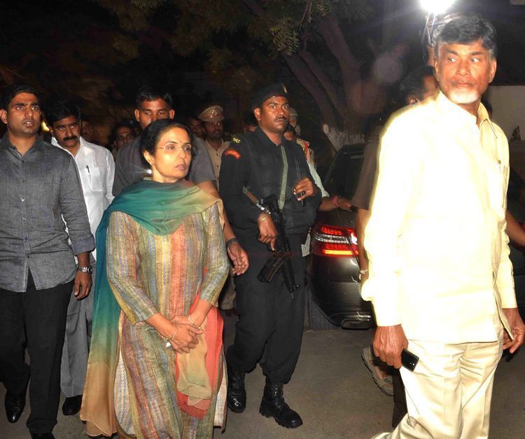 Chandrababu Naidu along with his wife Bhuvaneswari, son Lokesh rushed to Harikrishna's residence after hearing the news of Janakiram's tragic death.