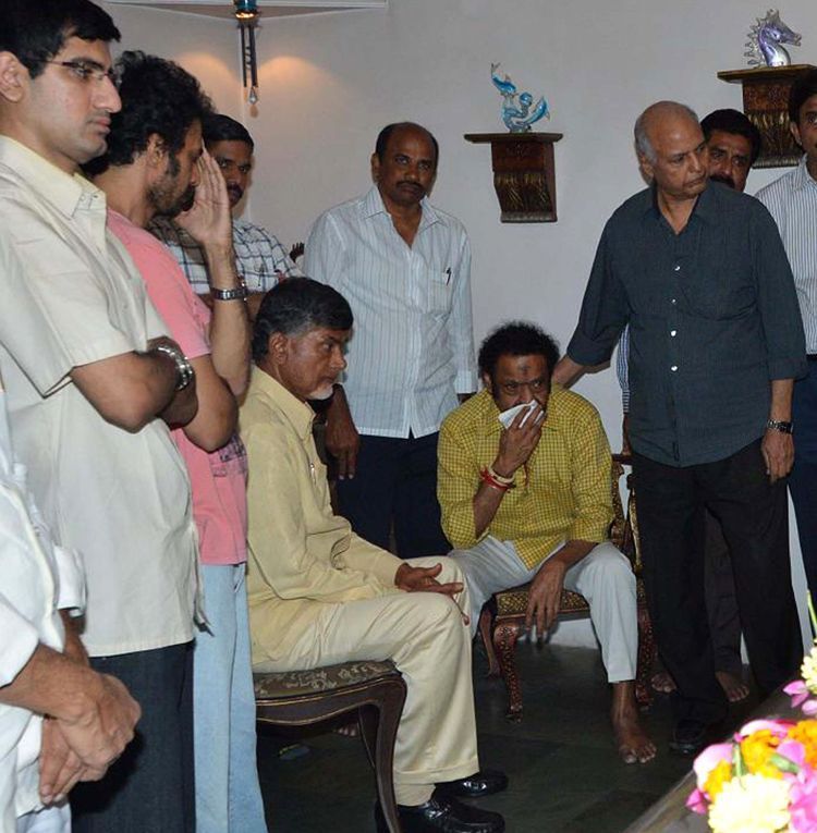 Chandrababu Naidu seen consoling Harikrishna after paying homage to Janakiram.
