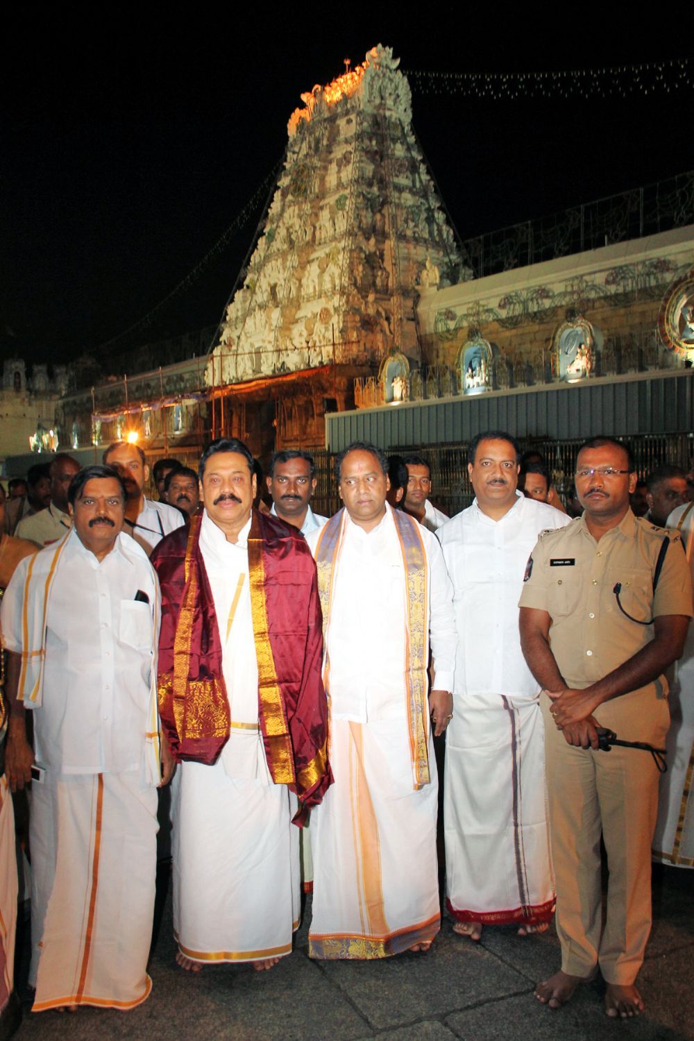 President of Sri Lanka Mahinda Rajapaksa accompanied by Family members offered Prayers to Lord Venkateswara at Tirumala on wee hours of Wednesday morning during Suprabatham Seva.
