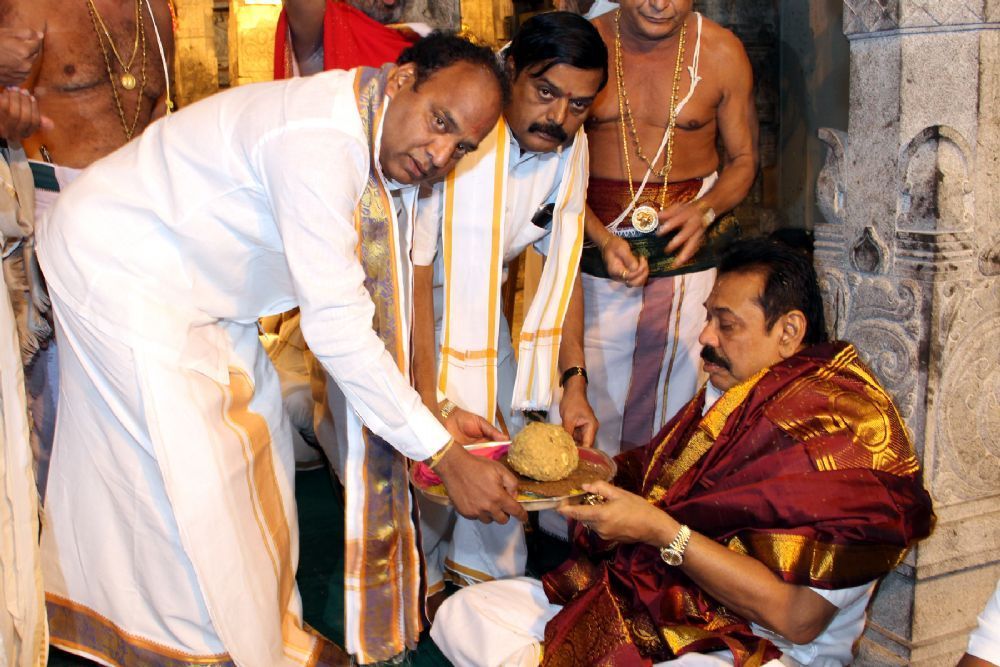 President of Sri Lanka Mahinda Rajapaksa accompanied by Family members offered Prayers to Lord Venkateswara at Tirumala on wee hours of Wednesday morning during Suprabatham Seva.