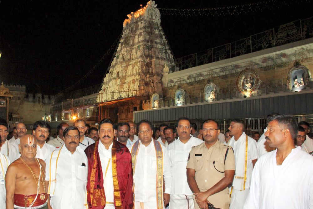 President of Sri Lanka Mahinda Rajapaksa accompanied by Family members offered Prayers to Lord Venkateswara at Tirumala on wee hours of Wednesday morning during Suprabatham Seva.