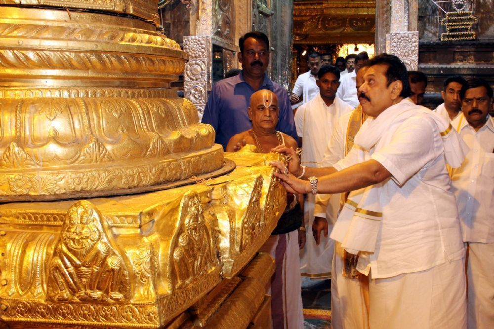 President of Sri Lanka Mahinda Rajapaksa accompanied by Family members offered Prayers to Lord Venkateswara at Tirumala on wee hours of Wednesday morning during Suprabatham Seva.