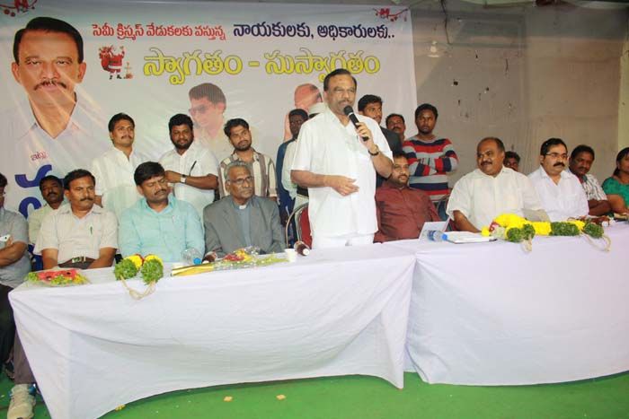 The semi-Christmas celebrations organised by Magunta Yuvasena at Ambedkar Bhavan, Ongole on Friday.