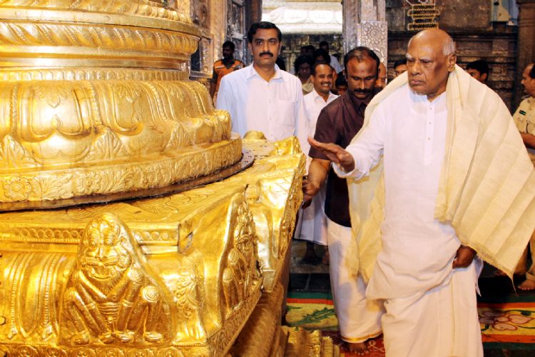 Governor of Tamil Nadu Dr. K. Rosaiah along with his family members offered prayers to the lord Venkateswara on Monday morning. After dharshan, JEO K.S.Sreenivasa Raju has presented Sri Vari Prasadam to the Governor.