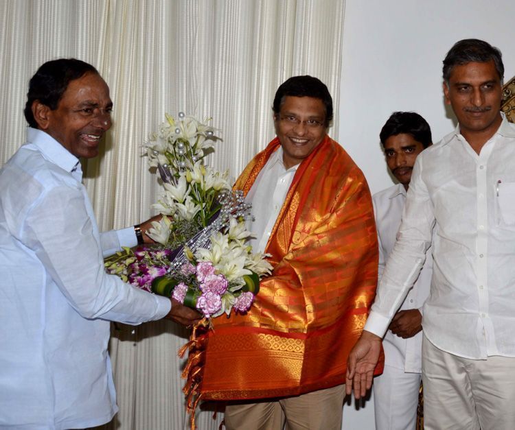 Chief Minister K Chandrasekhar Rao felicitating TRS Sattupalli MLA Jalagam Venkat Rao when the latter called on him at his camp office after taking charge as Parliamentary Secretary on Saturday.