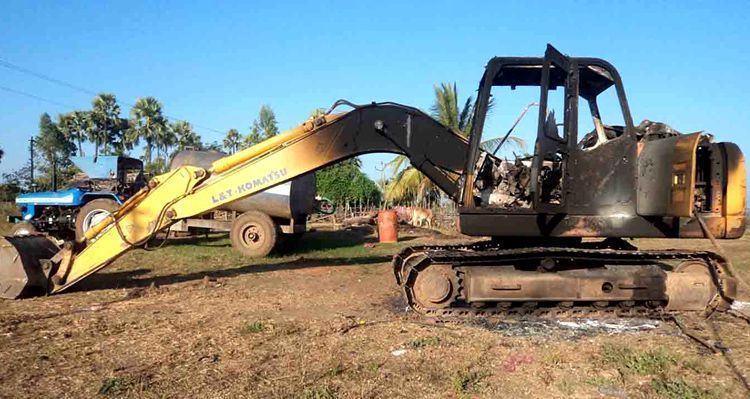 Maoists set afire to vehicles and heavy duty road construction equipment engaged in laying a road in Khammam district on Tuesday.