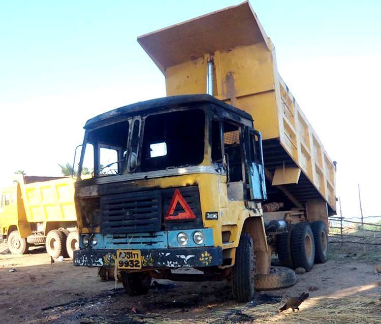 Maoists set afire to vehicles and heavy duty road construction equipment engaged in laying a road in Khammam district on Tuesday.