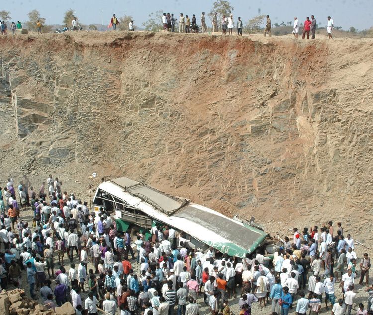20 passengers were killed and 30 others injured when an RTC bus in which they were travelling fell into a deep gorge between Penukonda-Madakasira in Anantapur district on Wednesday. Of the injured the condition of eight students is reported to be critical. The injured have been admitted to hospitals in Penukonda, Bangaluru, Hindupur, Anantapur hospitals. – Click here for more photos inside.