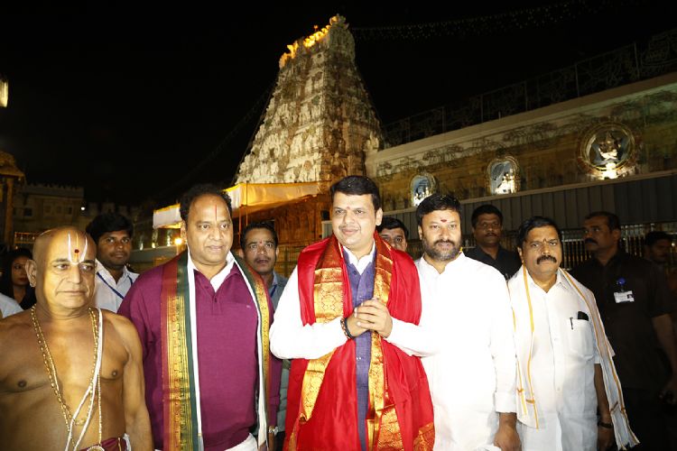 Chief Minister of Maharashtra Devendra Fadnavis had Maha laghu darshan of Lord Venkateswara like any other common pilgrim where he offered prayers to presiding deity inside the temple from a distance over 60feet on Sunday evening. After dharshan the Temple Tirumala Joint Executive Officer KS Sreenivasa Raju, Dy EO Chinnamgari Ramana has presented Sri Vari Prasadam at Ranganayakula Mandapam.