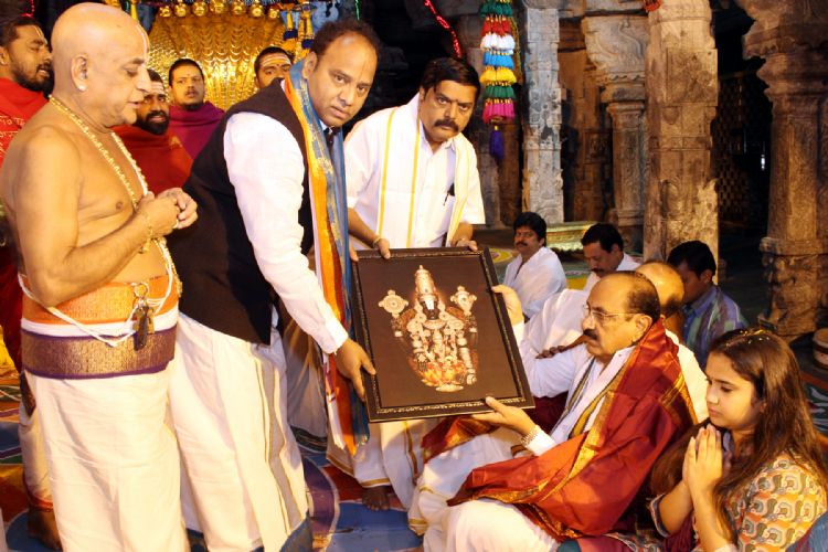 Minister of Health, AP Kamineni Srinivas offered prayers in the temple of Lord Venkateswara at Tirumala on Sunday.