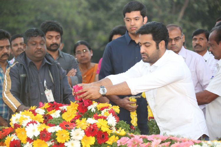 Jr.NTR paid tribute to his grand father N.T.Rama Rao on his 19th death anniversary at NTR ghat on Sunday.