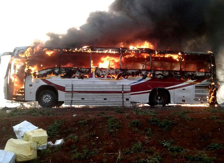 40 passengers had a miraculous escape when a Volvo multi axle bus they were travelling accidentally caught fire near Zaheeerabad in Medak dist on Monday.