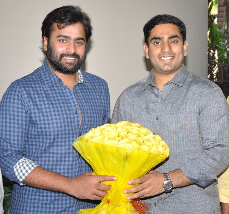 Nara Rohit, actor and cousin wishing Lokesh with a bouquet of flowers on his birth day at NTR Trust Bhavan in Hyderabad on Friday.