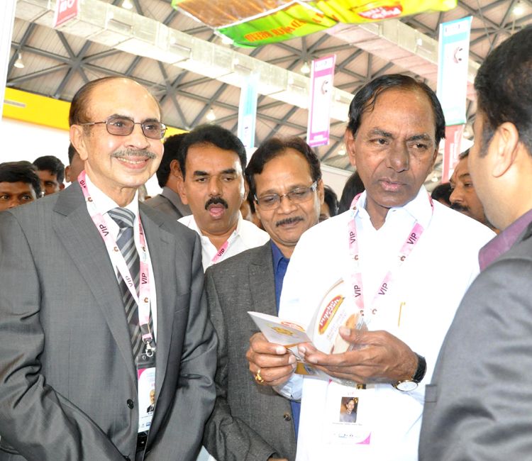 Telangana Chief Minister K. Chandrasekhar Rao with chairman of the Godrej Group Adi Godrej at the Dalit Indian Chamber of Commerce and Industry’s Trade Expo that was opened in HITEX at Hyderabad on Friday.