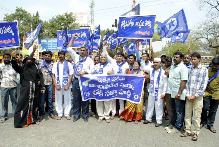 Loksatta Party activists took out a rally shouting slogans that the Modi government implement the provisions of the AP State Reorganisation Act.