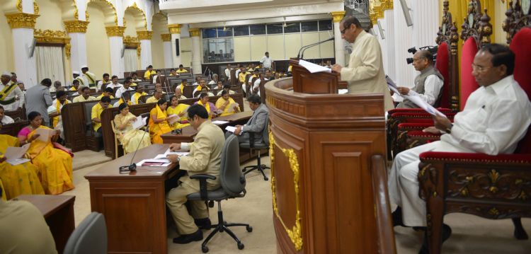 Andhrapradesh Governor E.S.L Narasimhan addressing the joint legislature on the opening day of the budget session on Saturday.