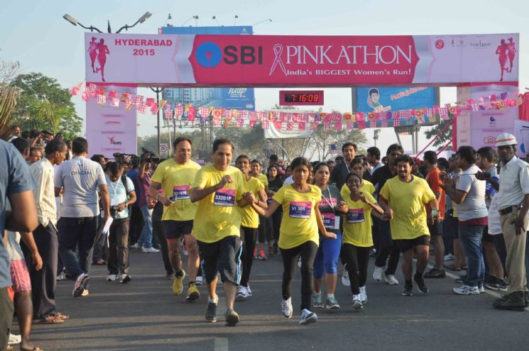 Hundreds of people including kids and girls participated in Pinkathon Womens run 2015 at Peoples Plaza Hyderabad on 15th march 2015