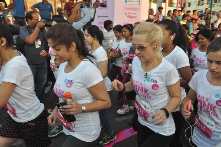 Hundreds of people including kids and girls participated in Pinkathon Womens run 2015 at Peoples Plaza Hyderabad on 15th march 2015