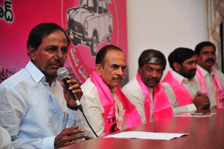 TRS Supremo Sri K. Chandrasekhar Rao addressing with TRS party cadre in Telangana Bhavan on Monday.