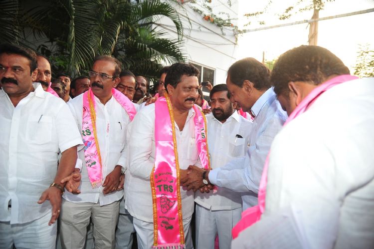 TRS Supremo Sri K. Chandrasekhar Rao addressing with TRS party cadre in Telangana Bhavan on Monday.