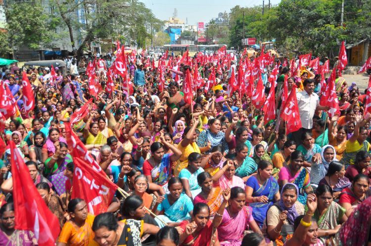 Anganwadi workers of Andhra Pradesh protesting against government demanding salary hike on Tuesday.