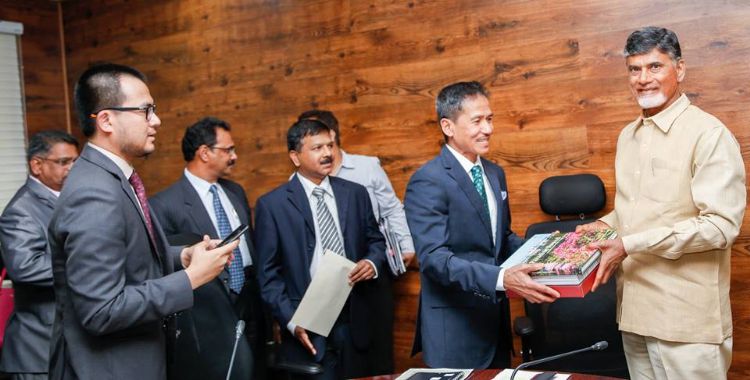 Andhra Pradesh Chief Minister Chandrababu Naidu with the delegates from Malaysia on March 17, 2015.