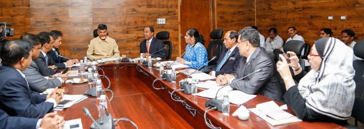 Andhra Pradesh Chief Minister Chandrababu Naidu with the delegates from Malaysia on March 17, 2015.
