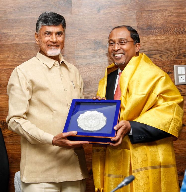 Andhra Pradesh Chief Minister Chandrababu Naidu with the delegates from Malaysia on March 17, 2015.