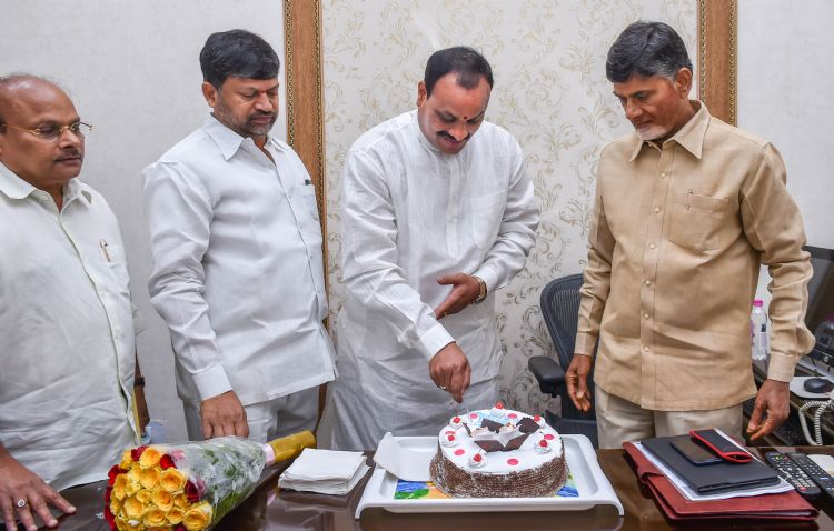 Honorable CM of AP Sri N. Chandrababu Naidu celebrating the birth day of Sri K.Atchannaidu, Minister of Labour and Employment on March 26, 2015