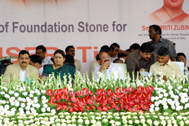 AP CM Chandrababu Naidu , M. Venkaiah Naidu, Union Minister for Urban Development, Smt. Smriti Zubin Irani, Union Minister for HRD and other dignitaries at the foundation stone laying ceremony for IIT & IISER, Tirupati & IIIT Chittoor on March 28, 2015.