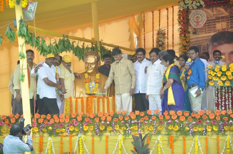 Andhra Pradesh Chief Minister N. Chandrababu Naidu lays foundation stone for the Pattiseema lift irrigation project on March 29, 2015.