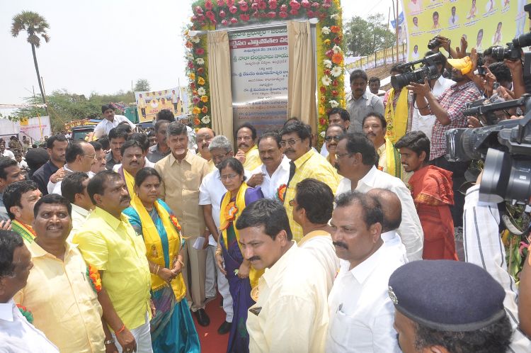 Andhra Pradesh Chief Minister N. Chandrababu Naidu lays foundation stone for the Pattiseema lift irrigation project on March 29, 2015.
