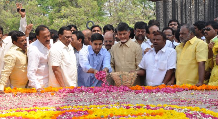 AP CM N.Chandrababu Naidu hoisted TDP Flag at NTR Bhavan on the eve of 34th Telugudesam Party Formation Day on March 29, 2015.