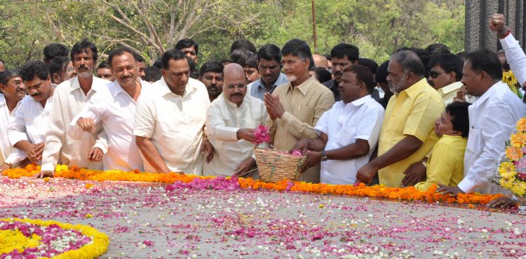 AP CM N.Chandrababu Naidu hoisted TDP Flag at NTR Bhavan on the eve of 34th Telugudesam Party Formation Day on March 29, 2015.