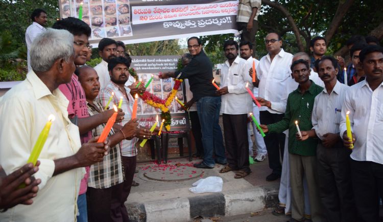 Expressing solidority to Tamil people in the wake of recent fake Encounter killings of Tamil wood cutters at Seshachalam forests in Chittor district of Andhra Pradesh, hundreds of Telugu people living in Chennai took out a candle rally at historic Valluvarkottam on April 14, 2015.