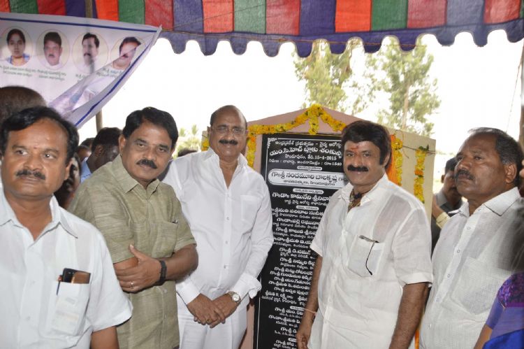 Andhra Pradesh Ministers Kamineni Srinivas and Palle Raghunatha Reddy, Hindupur MLA N.Balakrishna, MP Nimmala Kishtappa laying foundation stone to MCH Bhavan at Hindupur.