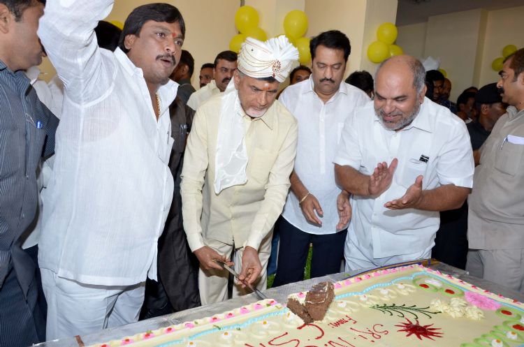 Andhra Pradesh Chief Minister Nara Chandrababu Naidu celebrating his 65th birthday on April 20, 2015.