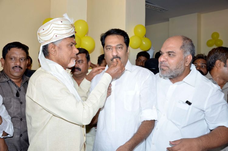 Andhra Pradesh Chief Minister Nara Chandrababu Naidu celebrating his 65th birthday on April 20, 2015.
