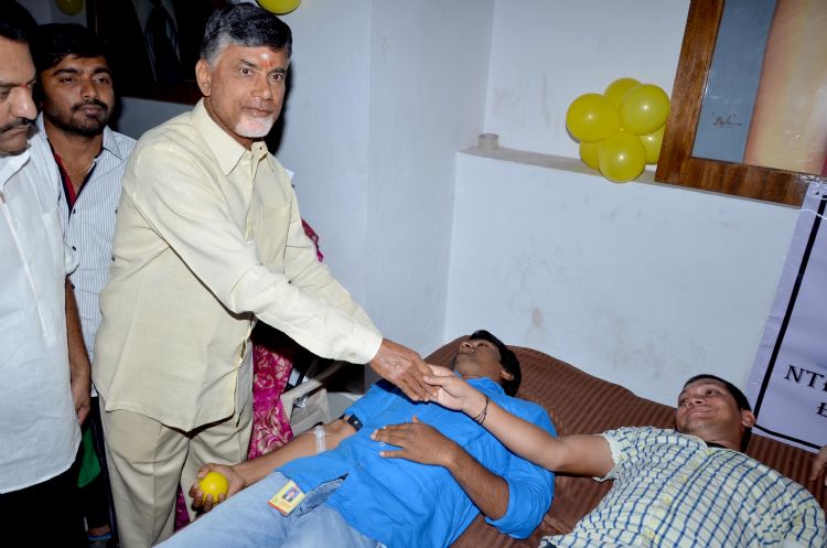 Andhra Pradesh Chief Minister Nara Chandrababu Naidu celebrating his 65th birthday on April 20, 2015.